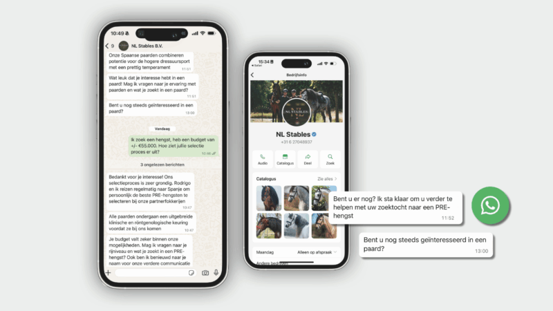Dankzij de WhatsApp-assistent ontvangt NL Stables-klanten direct antwoord op hun vragen, op elk moment van de dag en volledig afgestemd op de meest actuele informatie. Het contact blijft persoonlijk, terwijl het team wordt ontlast van repetitieve communicatie.