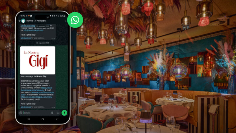 Die beleving wil het team op elk moment hooghouden. Maar tijdens drukke avonden en buiten openingstijden was het lastig om telefonische reserveringen goed en snel te verwerken. De uitdaging: een oplossing die de gastbeleving versterkt en het personeel ontlast.